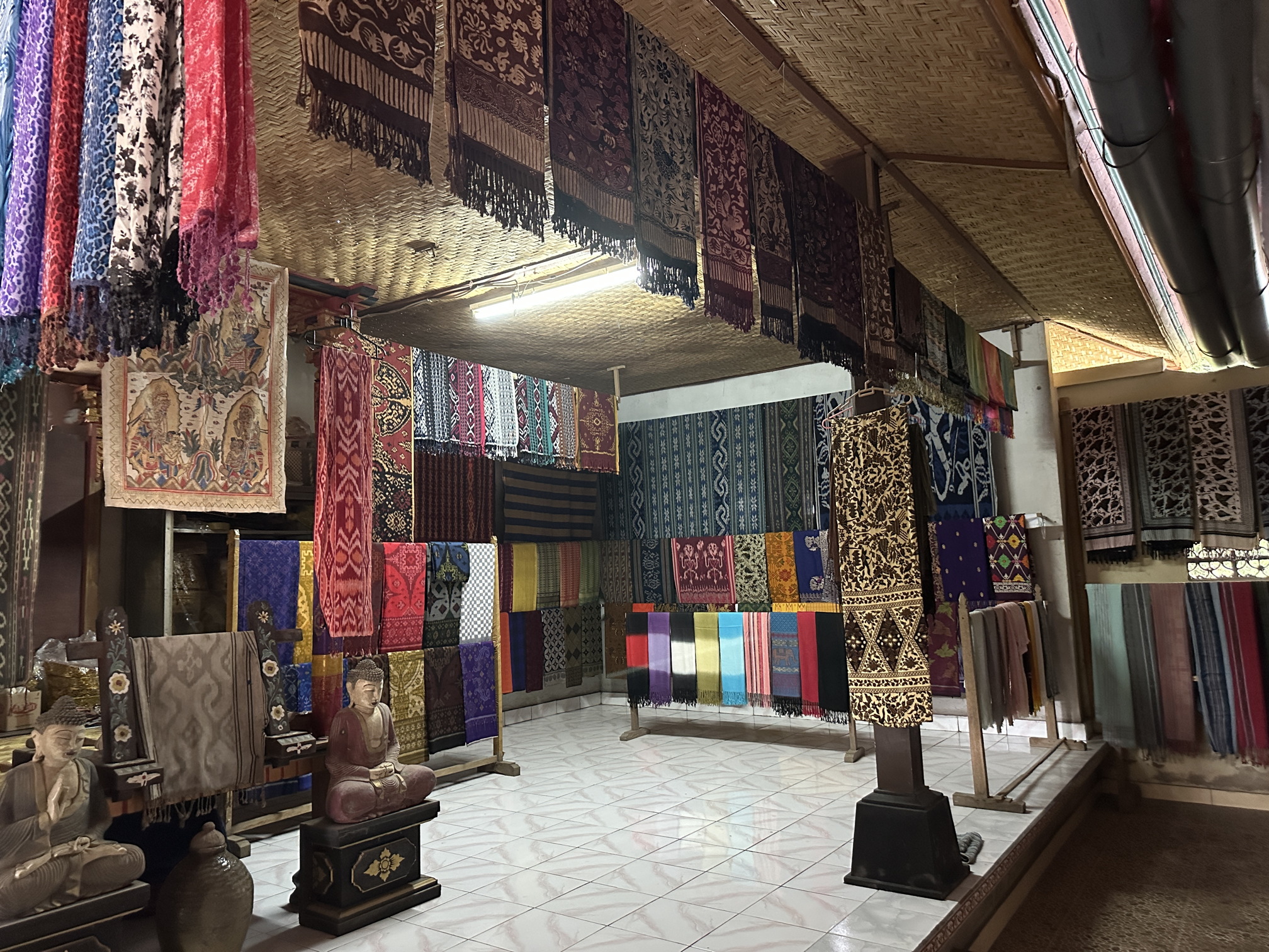 Bali’s ikat fabrics are gorgeous. Subtle, rich, intricate, implausible in their craft. In counterpoint, Java’s batiks are the bumptious clown car to Bali’s sleek Formula 1 racer. Loud, intense, riotous, overstuffed… As we looked around…